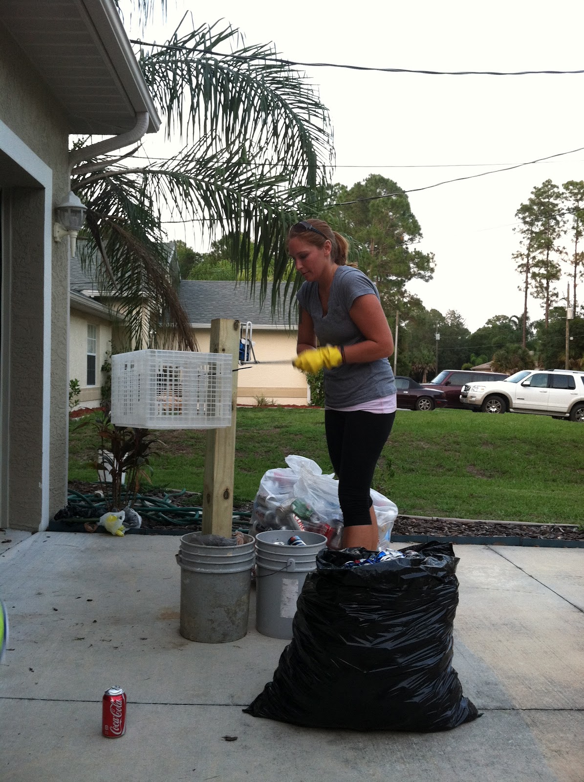 It only took one and she was hooked. We found several good spots but I was working twice as hard with two people spotting cans for me to climb in the woods to retrieve. We did have someone come out from their garage to ask what we were up to, and after talking for a minute she wanted to help us out. So she plans to leave her cans out for us to pick up rather than put them out with the recycling! We're getting quite a list of houses we go by each week to pick up their cans.