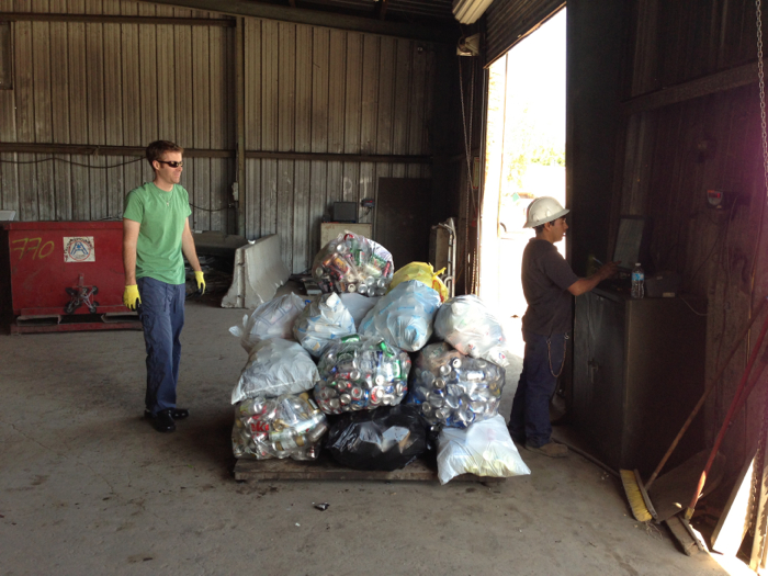 And I say that today was messy... but really it was just waterlogged. It had been raining for about 24 hours... and water collects at the bottom of the bins... so when we dig through for cans, our gloves get wet! And man oh man did my gloves {Kates' gloves actually} get wet! It was soooooo gross!
